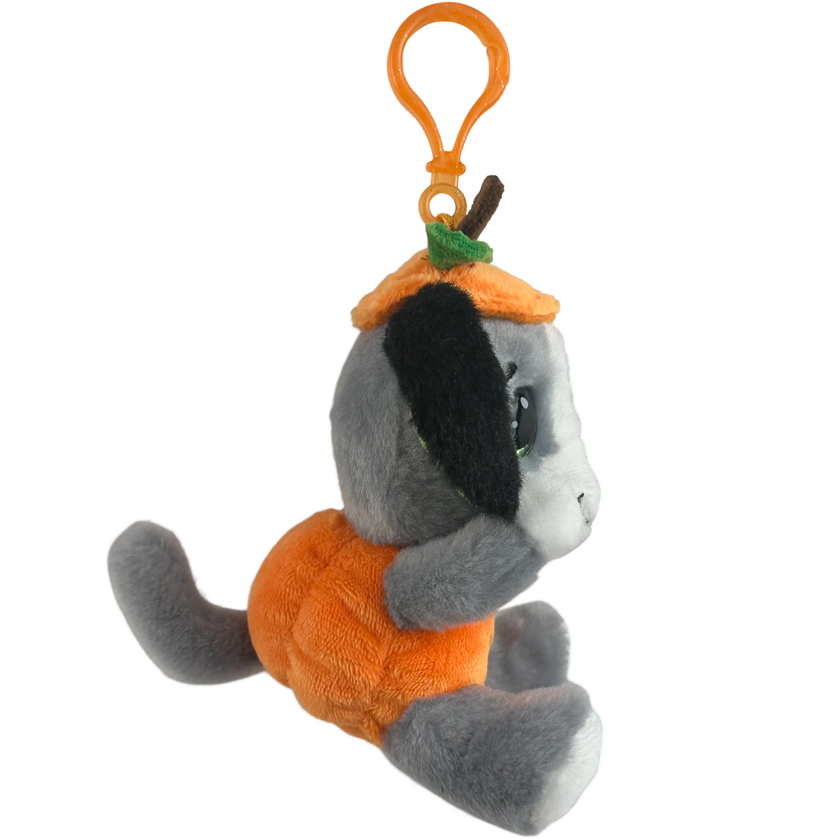 Ausie the Australian Shepherd is just the cutest little pumpkin! He canât wait to carve out some time for Halloween fun with his friends. He loves to tag along on All Hallows Eve and every day of the year. Sturdy plastic clip attaches to trick-or-treat bags, backpacks, purses, lunch bags, or beltloops. Measures 4â H and is carefully crafted of all new materials â polyester fibers and fill. Recommended for ages 3 and up.
