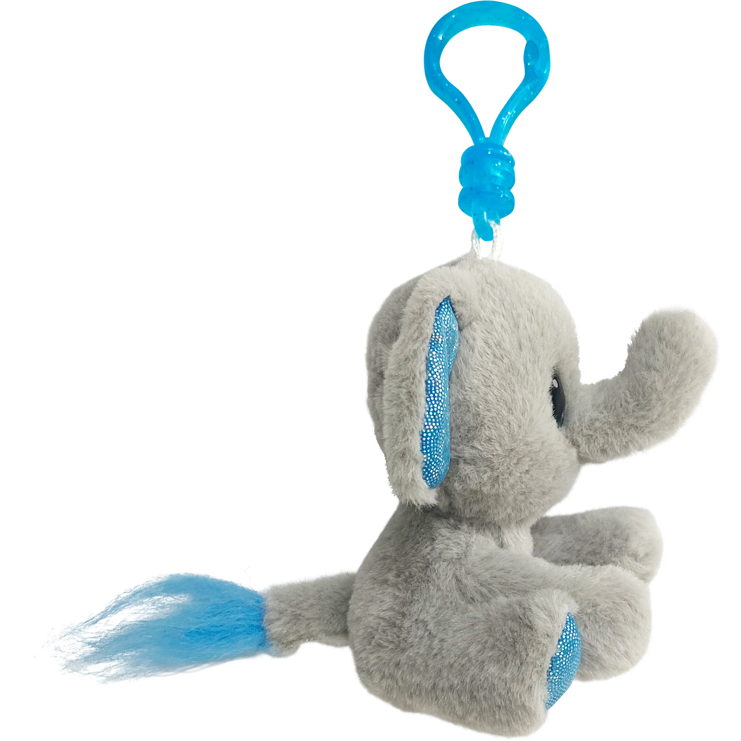 Give a cuddly and lovable gift for the young and young at heart, a huggable elephant plush backpack clip. A best friend in a very big way, Moby lends his weight and his ears to any pal in need as he tags along on lifeâs daily adventures. It features a sturdy plastic clip for attaching to backpacks, purses, lunch bags, or beltloops. From playtime on the playground to crunching numbers in math class, every day is better with Moby! It makes a thoughtful gift for birthdays, holidays, or back to school, and is great for anyone who loves the intelligent and gentle nature of elephants. It measures 4âH and is carefully crafted of all new materials, polyester fibers and fill. Recommended for ages 3 and up.