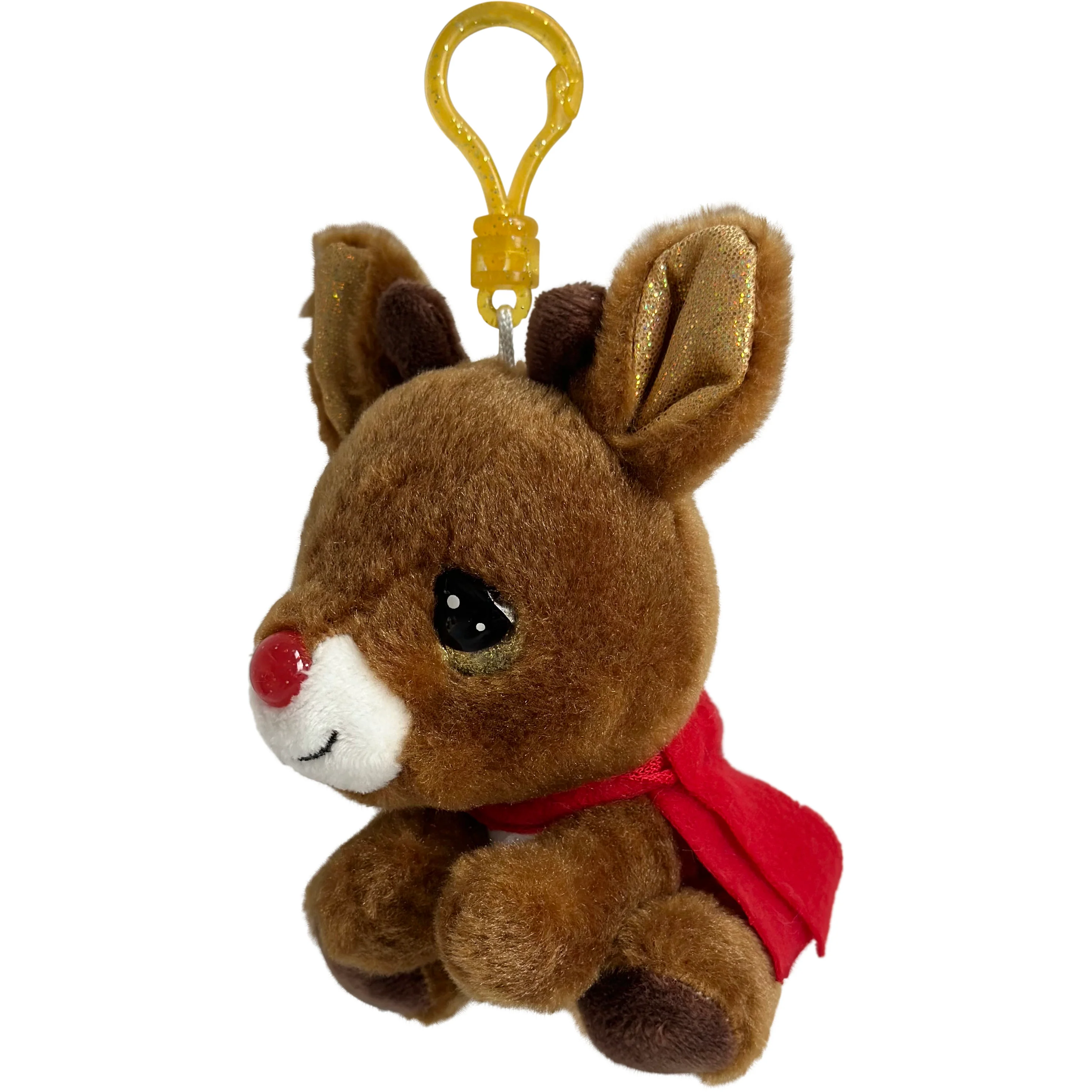 Give a cute and cuddly gift to someone who loves Rudolph the Red-Nosed Reindeer – a Rudolph backpack clip! Rudolph brightens the season with his shiny red nose that happens to match his cozy scarf. He is ready to tag along on every holiday adventure. Sturdy plastic clip attaches to stockings, presents, backpacks, purses, lunch bags, or beltloops. Makes a thoughtful gift to tuck into stockings and is also great for winter birthdays, or Christmas party favors or prizes. Measures 4” H and is carefully crafted of all new materials – polyester fibers and fill. Recommended for ages 3 and up.